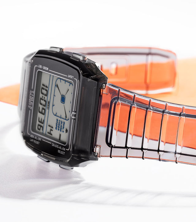 Call us nostalgic, but we love digging into our archives. This time we found a digital watch from the late ‘80s we just had to bring back. Our Q Timex® Digital LCA—liquid crystal analog—recreates the original right down to the unique digital/analog display. We’ve modernized it with a translucent resin case and coordinating resin strap available in grey, but kept the pre-INDIGLO® single-bulb backlight for a truly retro vibe. The result is a watch that’s just as useful, wearable, and appealing as it was more than four decades ago.