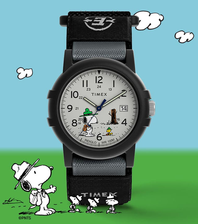 Celebrate 50 years of Beagle Scouts with our Timex Expedition x Peanuts Camper watch. With luminescent hands and INDIGLO® backlight, you'll be ready for any outdoor adventure, and the endearing dial artwork will bring a smile to your face every time you check the time. Perfect for hiking or camping with your troop, this watch pays homage to the incredible legacy of the Beagle Scouts and their 50 years of inspiring and empowering adventurers of all ages.Specifications