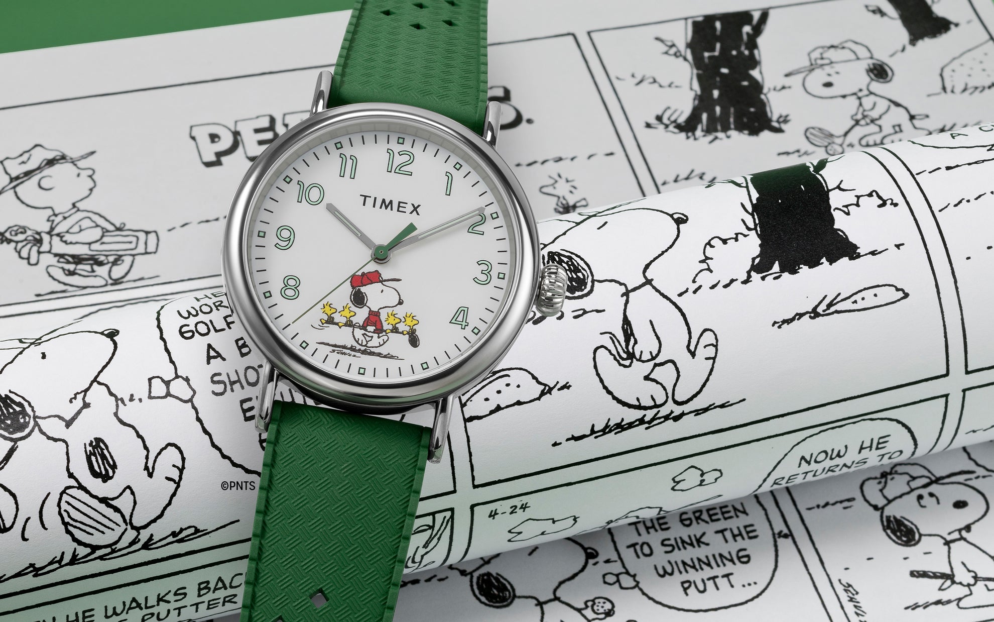 Our most refined everyday watch meets our favorite Peanuts® beagle. We updated our versatile Timex Standard—pairing the silver-tone 40mm case and green rubber strap with luminant hands, our INDIGLO® backlight, and a clean white dial showcasing Snoopy, Woodstock, and their feathered friends hitting the golf course in style.Specifications